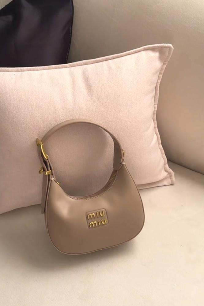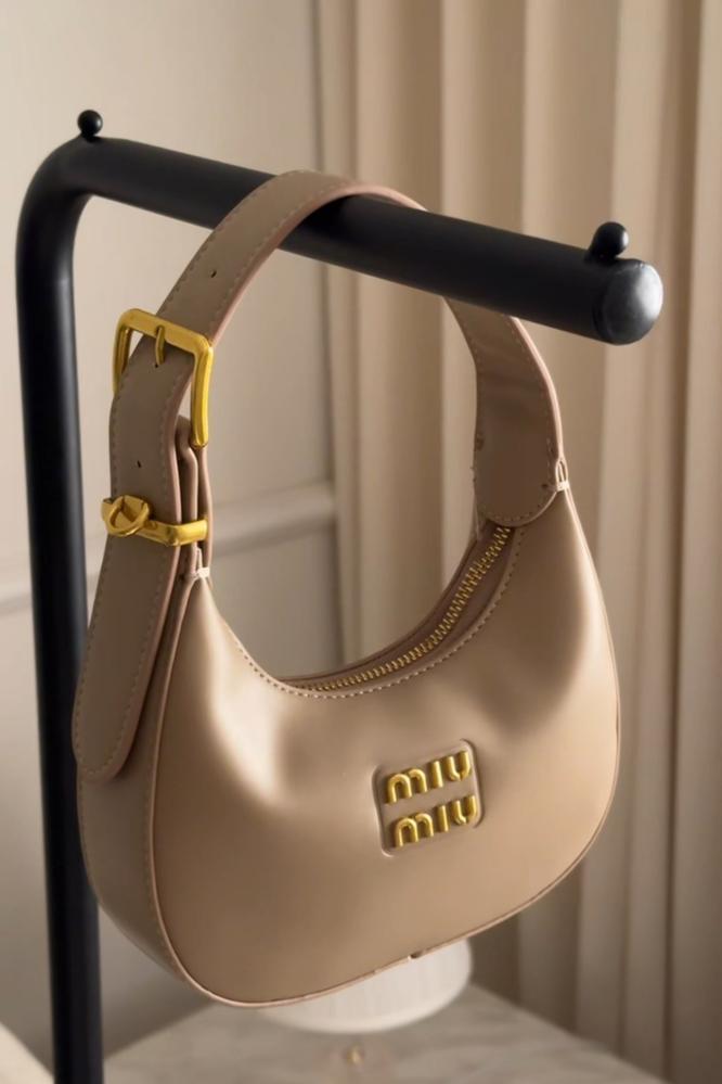 ميو ميو من الأشكال الحديثة وكولكشن العيد ..اللون : بني كاكي الحجم : مينيالمقاس : طول 15سم / عرض 18سمإسترب طويل جلدي إضافي شامل كيس الماركة