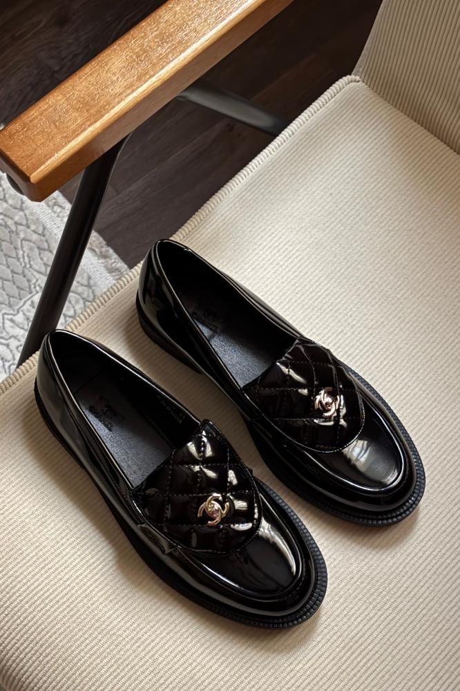 فلات شانيلاللون : أسودلون الحديد : فضينوع الجلد سادة لامعمتوفرة عدة مقاسات متنوعة من ( 36-37-38-39-40-41)يرجى اختيار المقاس بعناية قبل الطلب 🧡