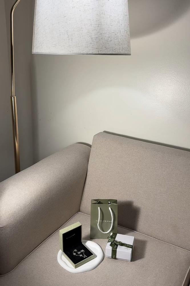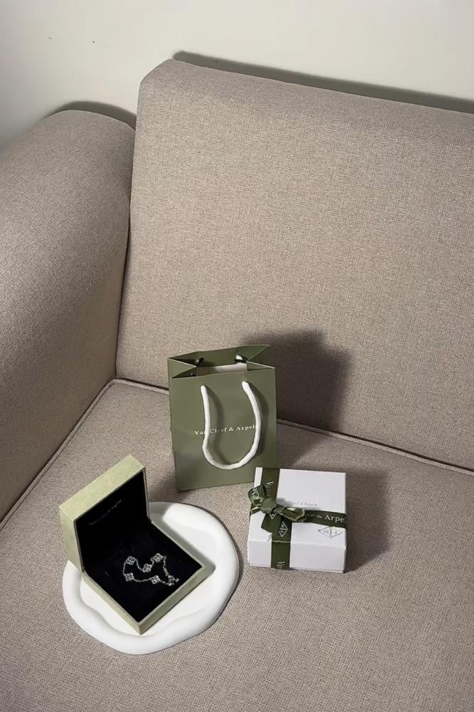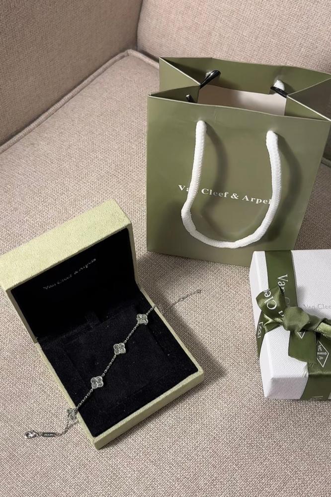 إسوارة فان كليف ..اللون : فضيالدرجة : ماستر طبق الأصلملحقات الإسوارة : علبة فان كليف - علبة حفاظ فان كليف - شريط فان كليف - كيس الماركة .